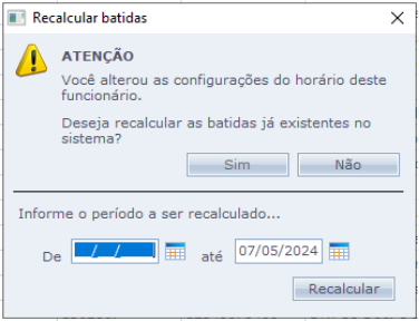 Caso seja necessário, recalcule as batidas de acordo com o período solicitado, colocando data inicial e final informada.